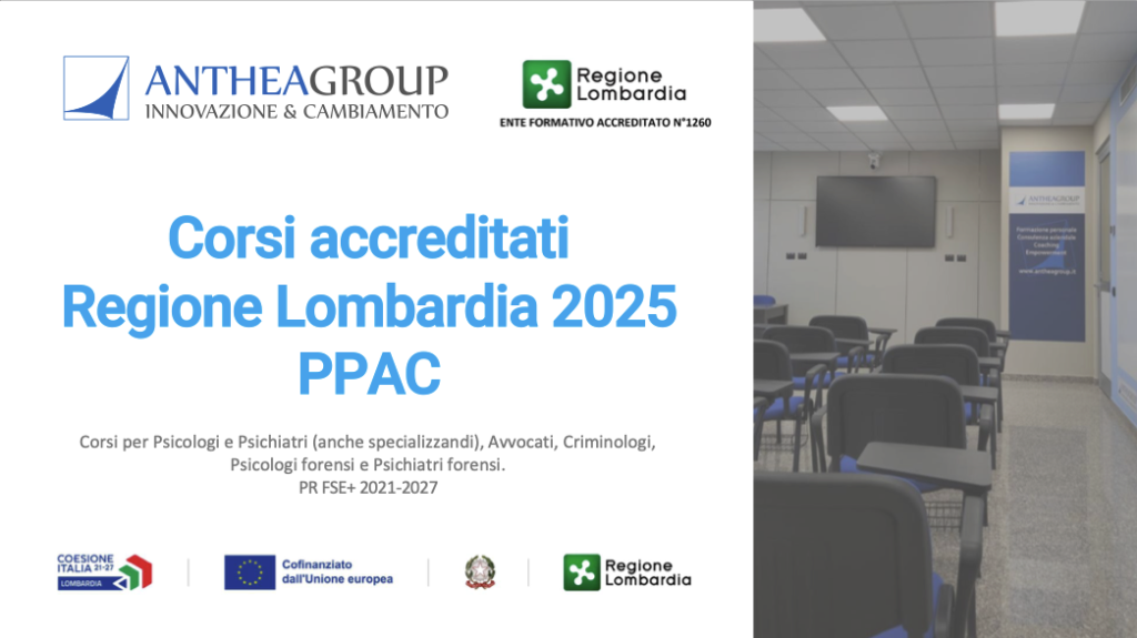 Il primo percorso che integra psicologia e criminologia in corsi accreditati, live e interamente finanziati dalla Regione Lombardia* per psicologi, psichiatri, criminologi, avvocati e forze dell’ordine.