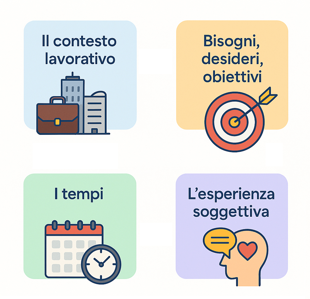 Il motore dell’attività di coaching sono i bisogni, i desideri e gli obiettivi professionali del Coachee. E’ da li che si parte: da quegli obiettivi specifici che, se realizzati, possono determinare un salto di qualità nelle prestazioni professionali del Coachee e aumentarne il suo potenziale (Empowerment).