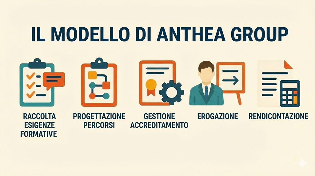 Questa è solo la prima fase del nostro modello in 5 step, che permette alle aziende di vivere la formazione come un percorso strutturato, misurabile e davvero chiavi in mano: dalla raccolta delle esigenze alla rendicontazione finale.